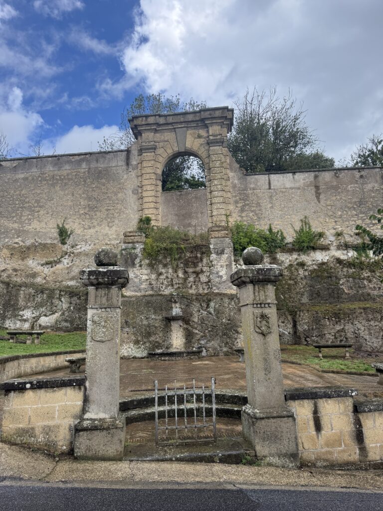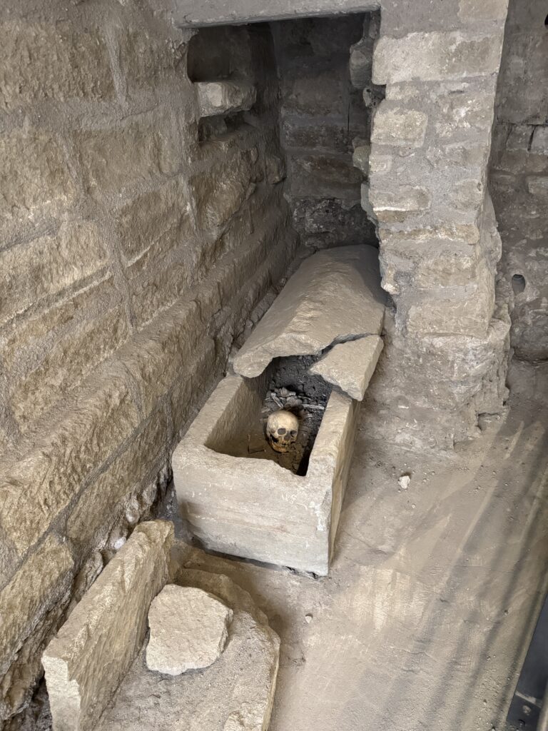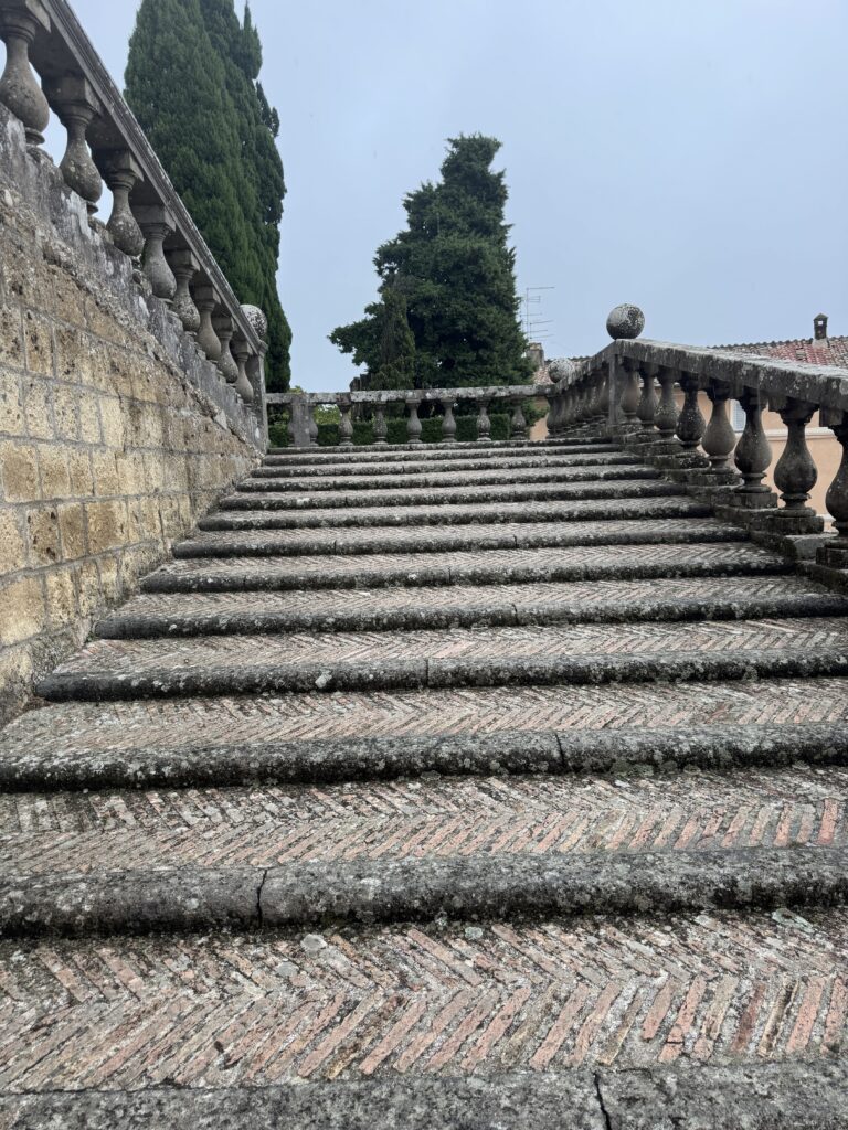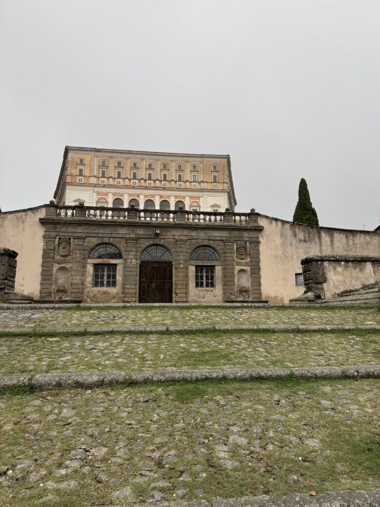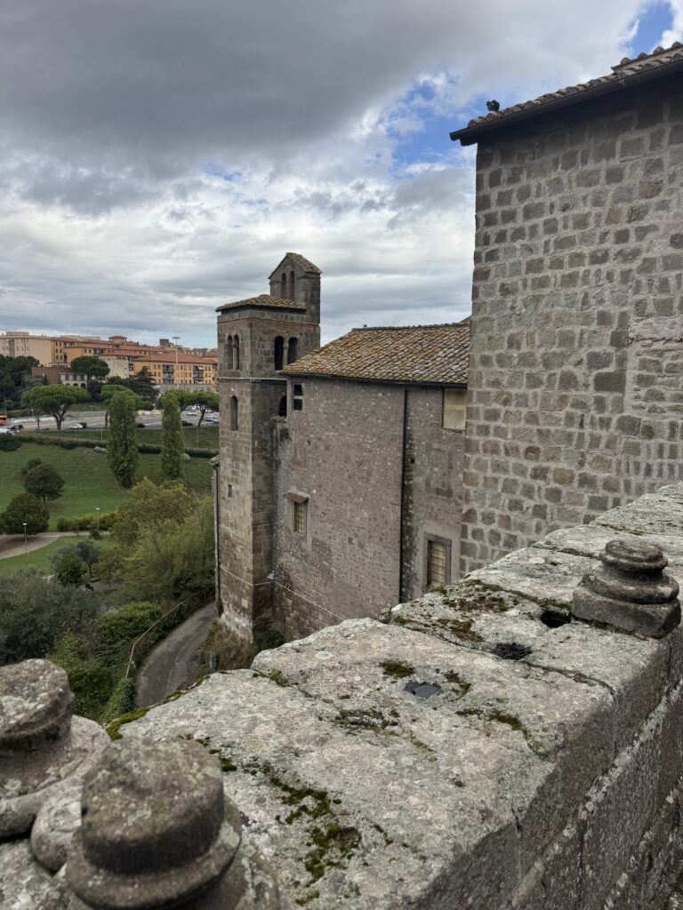 Byggdes med travertin kalksten, vulkanisk sten även kallad tofu, samt tegelklädd betong.