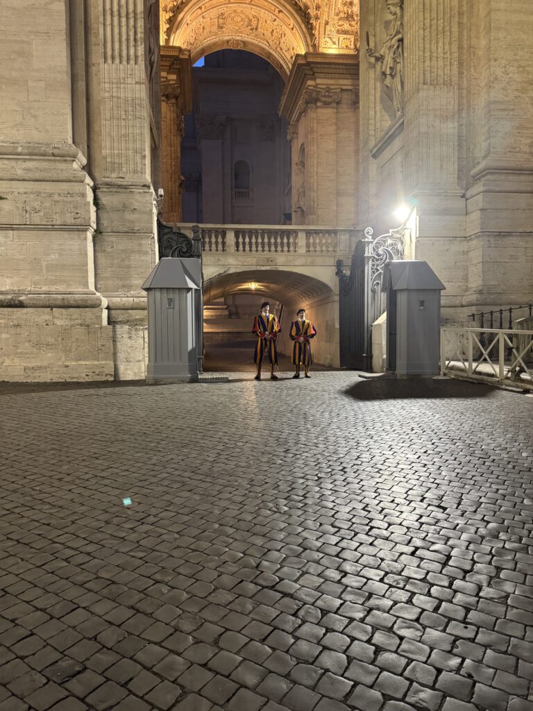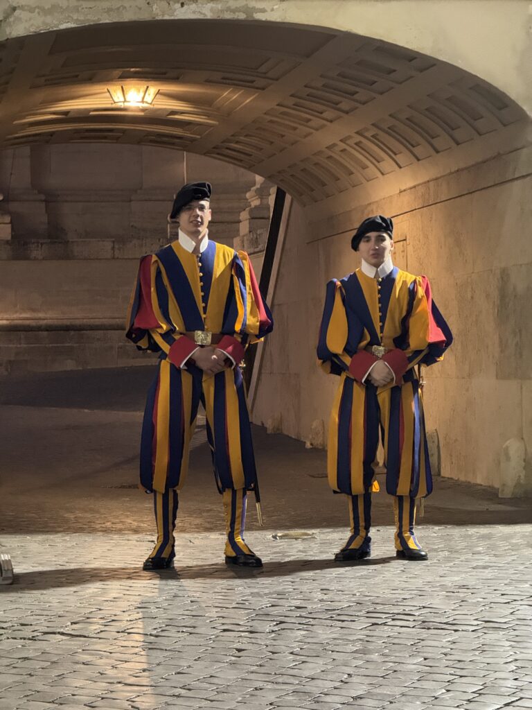 Schweizergardet, som är en del av Vatikanstatens säkerhetsstyrkor, och inte enbart en specifik personalgrupp dedikerad till portarna. Schweizergardets primära uppgift är att skydda påven och hans residens, upprätthålla ordning i Vatikanstaten och bevaka ingångarna till Vatikanen, vilket inkluderar bevakning av Heliga portarna vid högtidliga tillfällen.