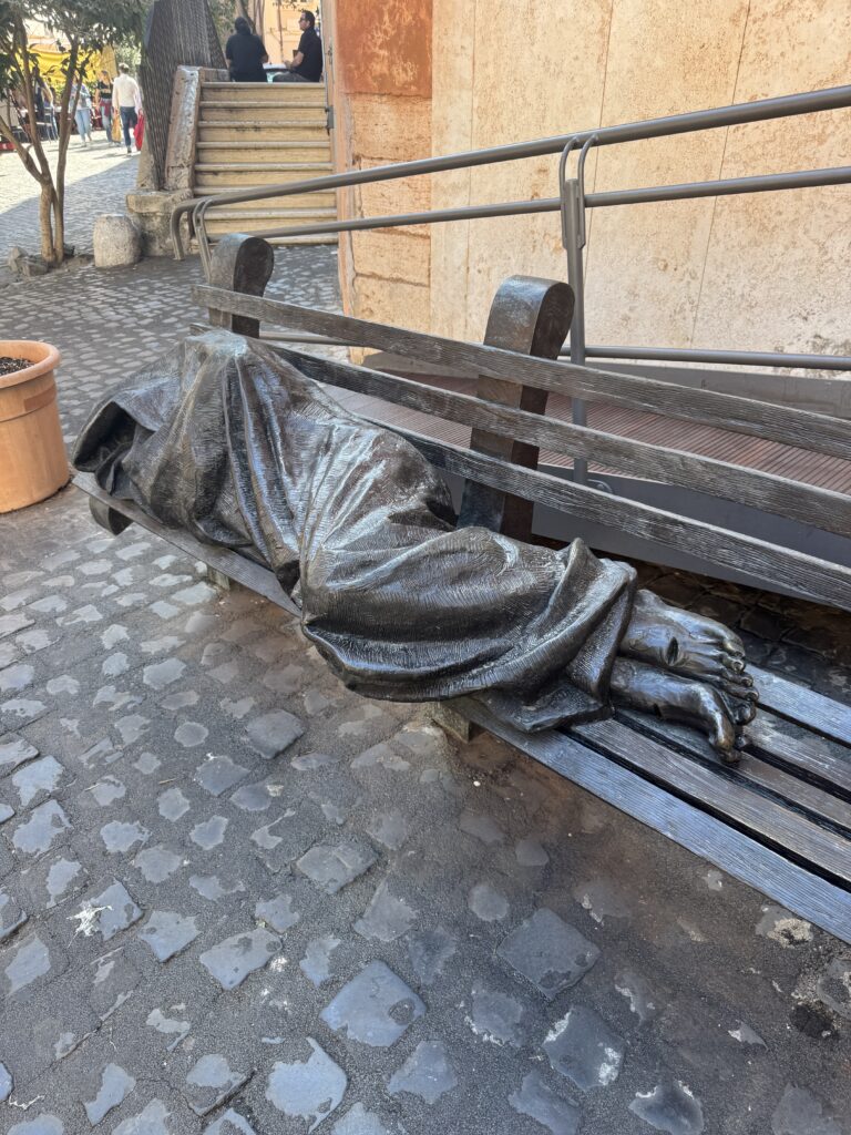 Vägen dit kantades av mycket människor. Många som var behövande av att få allmosor till ett mål mat.