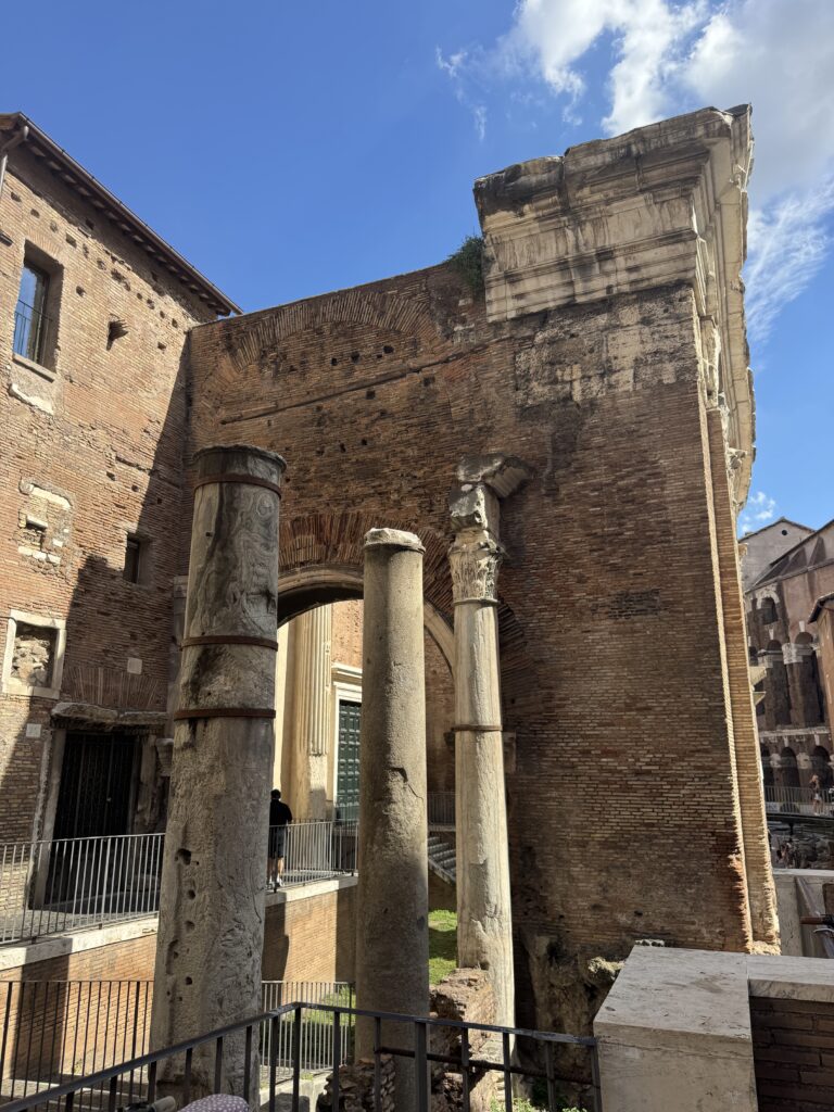 - Det gränsar till Colosseum och ligger nära den gamla romerska huvudgatan Via Sacra.