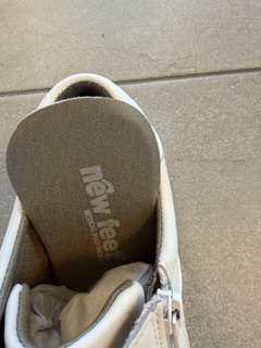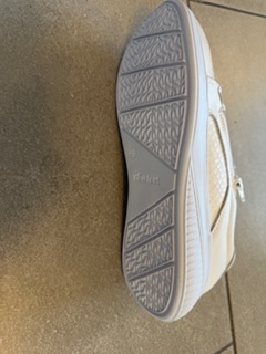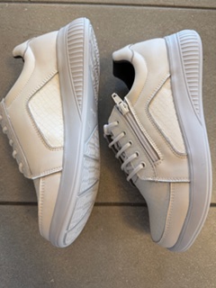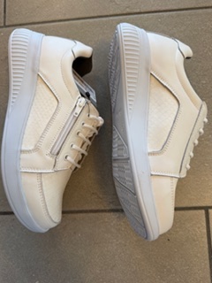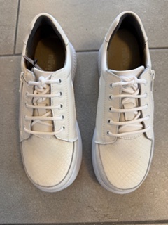 Vit lädersko med snörning och dragkedja. Rymlig modell.